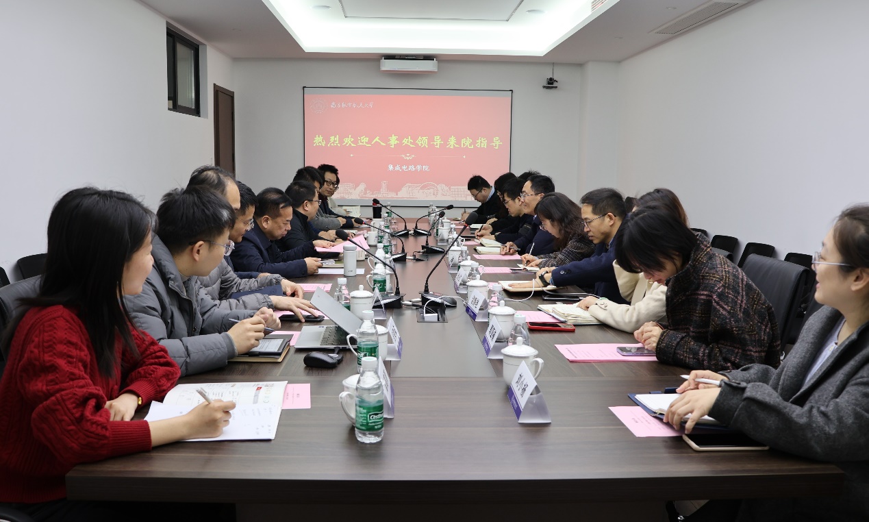 为贯彻落实学校第十七次党代会决策部署,切实推进学校进一步全面深化改革,进一步了解学院人事人才工作情况,3月18日下午,校长助理、人事处处长、高级人才办公室主任崔海涛带领人事处一行深入91pinse 开展人事人才工作调研。人事处领导班子、相关科室负责人,91pinse 领导班子、院长助理、系所负责人、高层次人才代表和教师代表参加了本次会议。