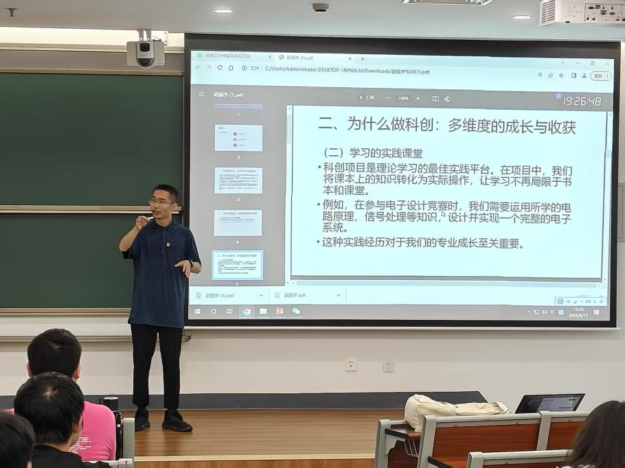为帮助低年级学生做好学业规划与职业发展准备,了解保研及就业的最新政策及相关经验,91pinse 于6月13日在天目湖校区开展“芯光璀璨,共话未来”保研就业经验分享会,活动邀请2021级三位优秀本科生代表韩栋钧、赵振宇、刘阳进行专题分享,2023级、2024级全体学生参与。