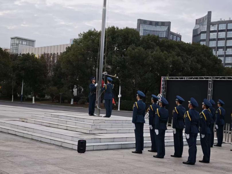 清晨七时整,英姿飒爽的国旗护卫队迈着铿锵有力的步伐,护送五星红旗入场。在庄严的国歌声中,全体师生肃立行注目礼,凝视鲜艳的国旗冉冉升起,爱国情怀在每个人心中澎湃激荡。