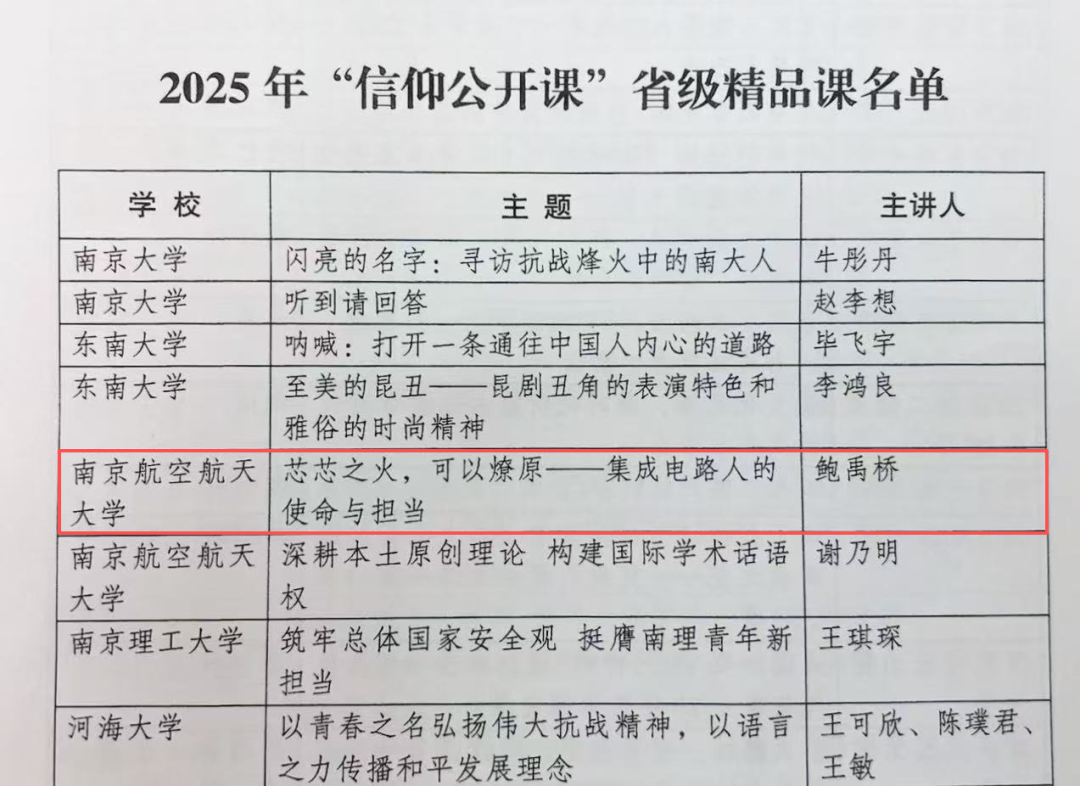 近日,共青团江苏省委发布《关于公布2025年“信仰公开课”省级精品课评选结果的通知》。经高校推荐、团省委评选,91pinse 2023级硕士研究生鲍禹桥“芯芯之火,可以燎原——集成电路人的使命与担当”主题课程入选省级精品课。该评选旨在推动全省高校共青团充分发挥在高校学生思想政治工作中的主力军作用,教育引导高校团员青年坚定不移听党话、跟党走,争做有理想、敢担当、能吃苦、肯奋斗的新时代好青年。