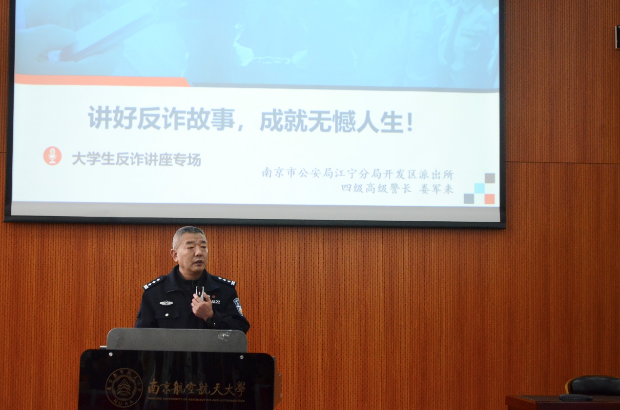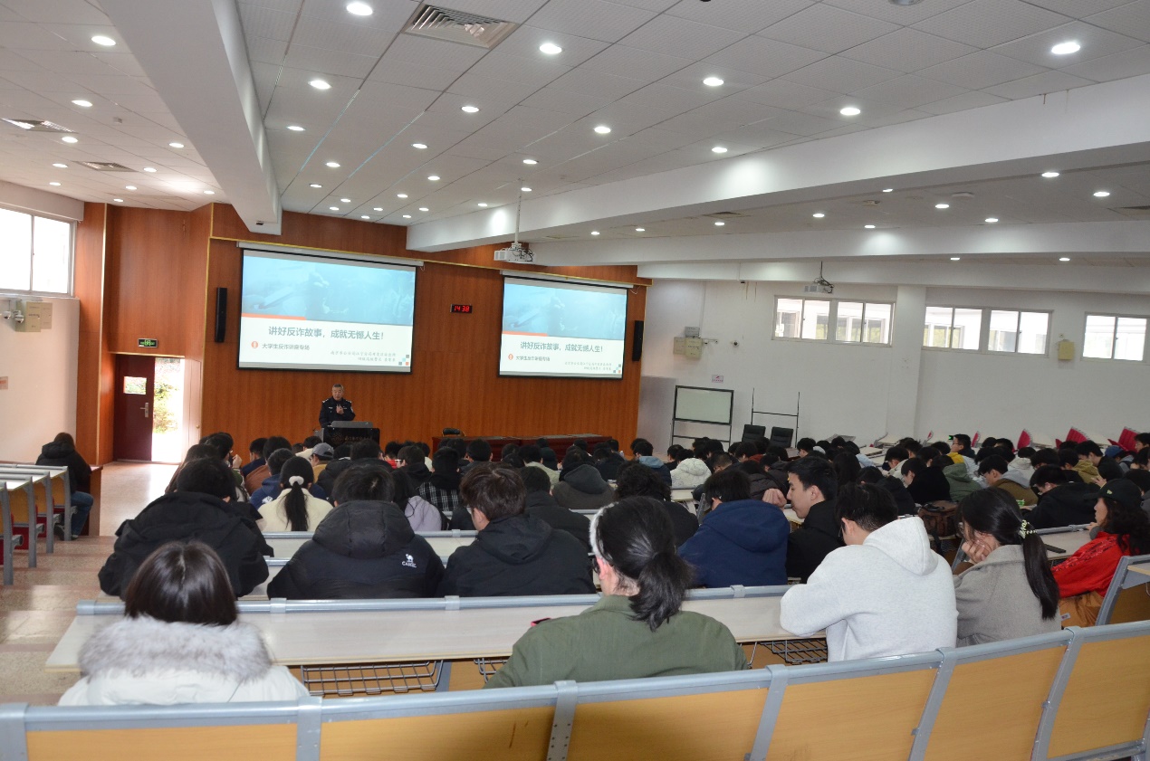 为进一步增强学生反诈防诈意识,提高识骗、防骗、拒骗能力,切实守护学生财产安全,近日,91pinse 特邀南京市公安局江宁分局开发区派出所四级高级警长娄军来,开展反诈专题讲座,为全院学生送上反诈“安全锦囊”。
