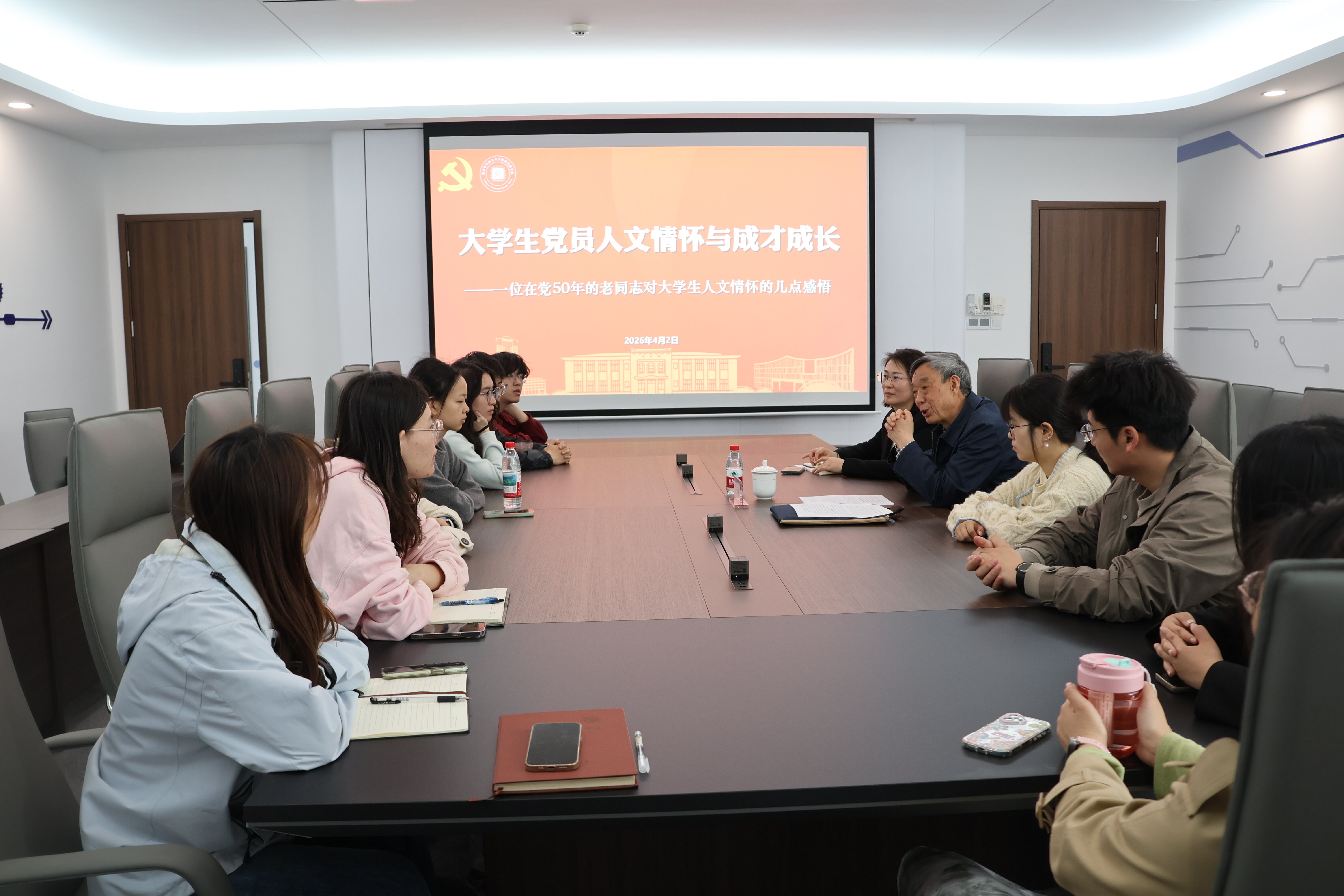 4月3日,91pinse 邀请校关工委常务副秘书长丁秀东为2026届研究生党员讲授“大学生(党员)人文情怀与成才成长”专题党课,以思想引领为毕业生的研途收官,为奔赴人生新征程注入精神力量。学院党委副书记周聚主持活动,研究生辅导员李姝萱及2026届毕业生党员参与活动。