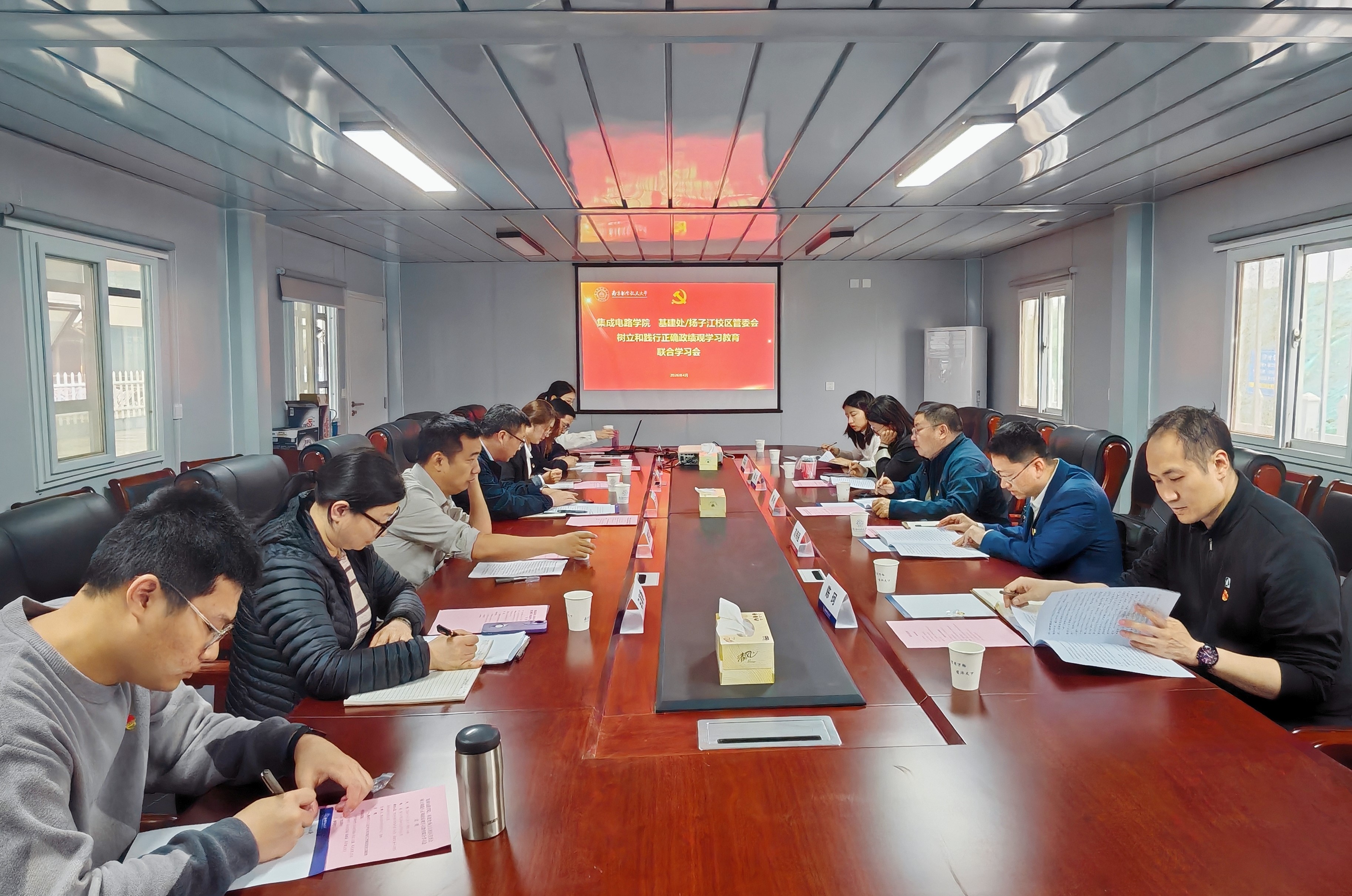 为深入开展树立和践行正确政绩观学习教育,推动学习教育成果转化为学院发展的实际成效,4月23日,91pinse 与基建处/扬子江校区管委会在扬子江校区开展树立和践行正确政绩观学习教育联学活动。活动由91pinse 党委书记黄彬主持,学院党委委员、基建处/扬子江校区管委会全体班子成员等参加活动。