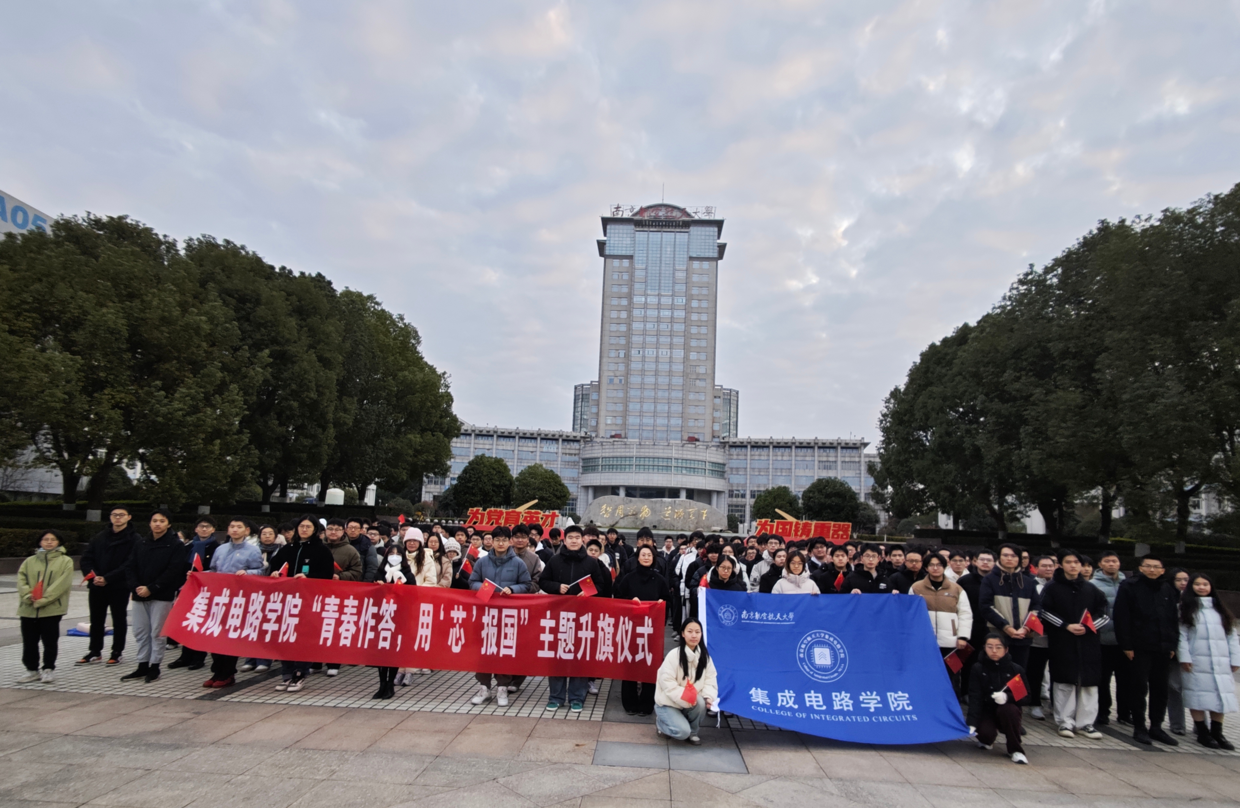 为深入开展爱国主义教育,激励广大青年学子将个人理想融入国家发展,12月22日,91pinse 在将军路校区国旗广场举办“青春作答,用‘芯’报国”主题升旗仪式。学院党委副书记周聚、全体辅导员、学院研究生及2022级、2023级本科生共同参加了此次活动。仪式由2023级本科生陈俊轩主持。